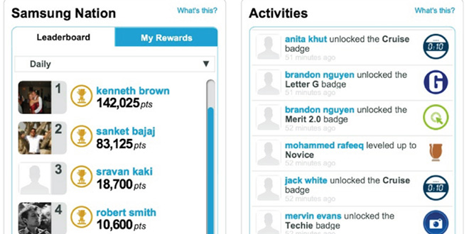 A good example is Samsung Nation’s Quest Badge, which is intangible, expected and completion contingent: