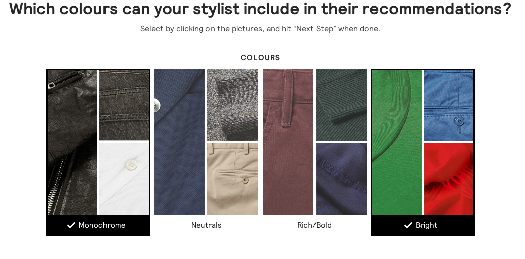 Fig. 8 – Signing up for Thread – “Which colours can your stylist include in their recommendations?”
