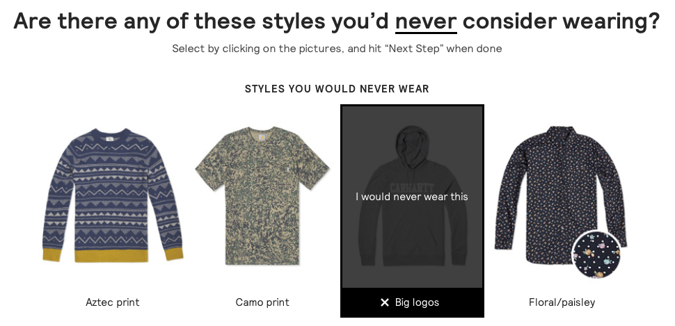 Fig. 10 – Signing up for Thread – “Are there any of these styles you’d never consider wearing?”