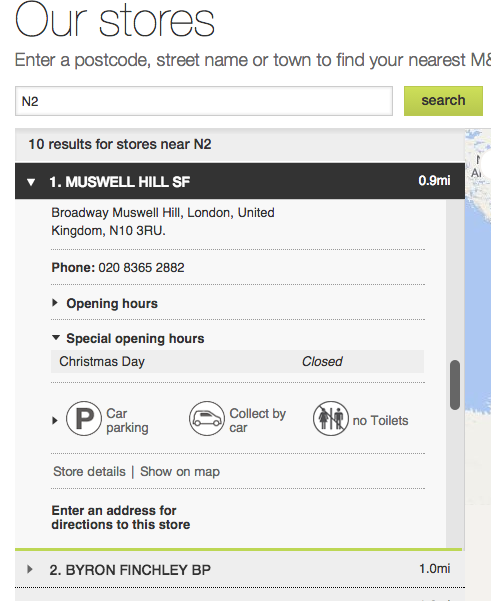 Fig. 1 – Screenshot of the results of Mark & Spencer’s store locator