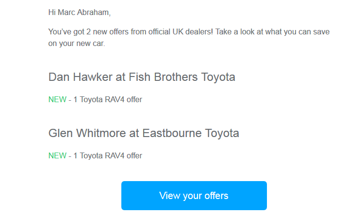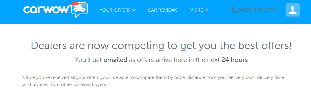 Fig. 8 – Screenshot of my Carwow dashboard with offers received: