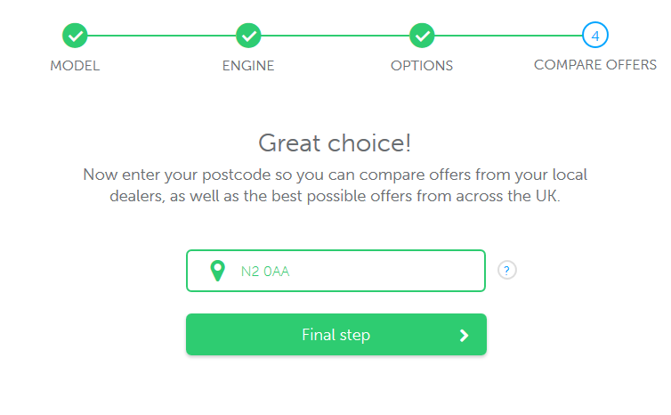 Fig. 7 – Entering my post code on Carwow to receive offers from local dealers:
