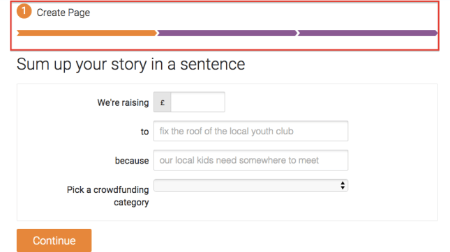 Fig. 4 – JustGiving’s “Create Page” form – Unclear progress bar