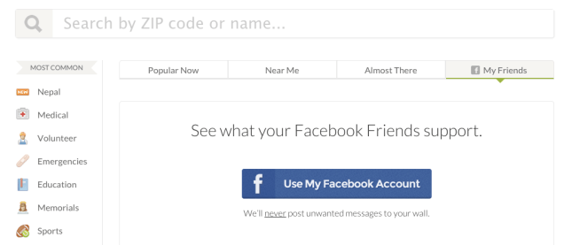 Fig. 13 – Screenshot of GoFundMe’s ‘discovery’ page