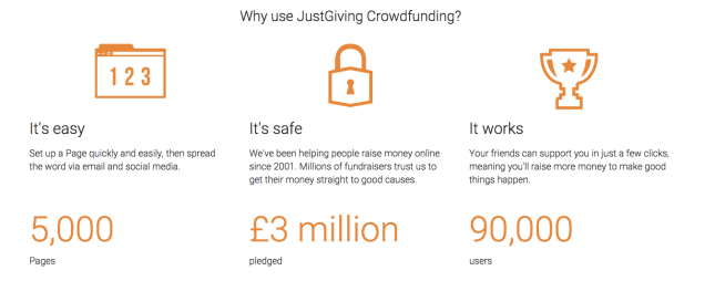 Fig. 2 – Benefits of using JustGiving Crowdfunding to raise money for projects