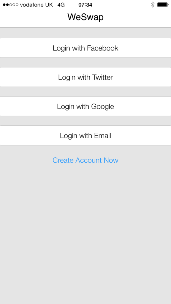 Fig. 1 – Screenshot of WeSwap opening screen (when using the app for the first time)