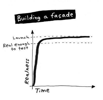 The fourth day of your sprint is all about illusion; instead of taking weeks, months, or even years to create the real thing, you’re going to fake it. Knapp, Zeratsky and Kowitz talk about building a facade (see Fig. 1 below). The main acceptance criterion for a successful facade is that it needs to be real enough to test with real customer on the fifth and final day of the sprint.