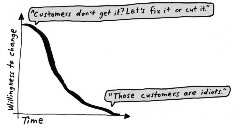 You and your team are only allowed to spend a single day on creating a facade, and that’s deliberate. Knapp, Zeratsky and Kowitz explain that the more time you spend on creating a prototype the more likely you are to become attached to it, and less likely to make any changes based on customer feedback (see Fig. 2 below).