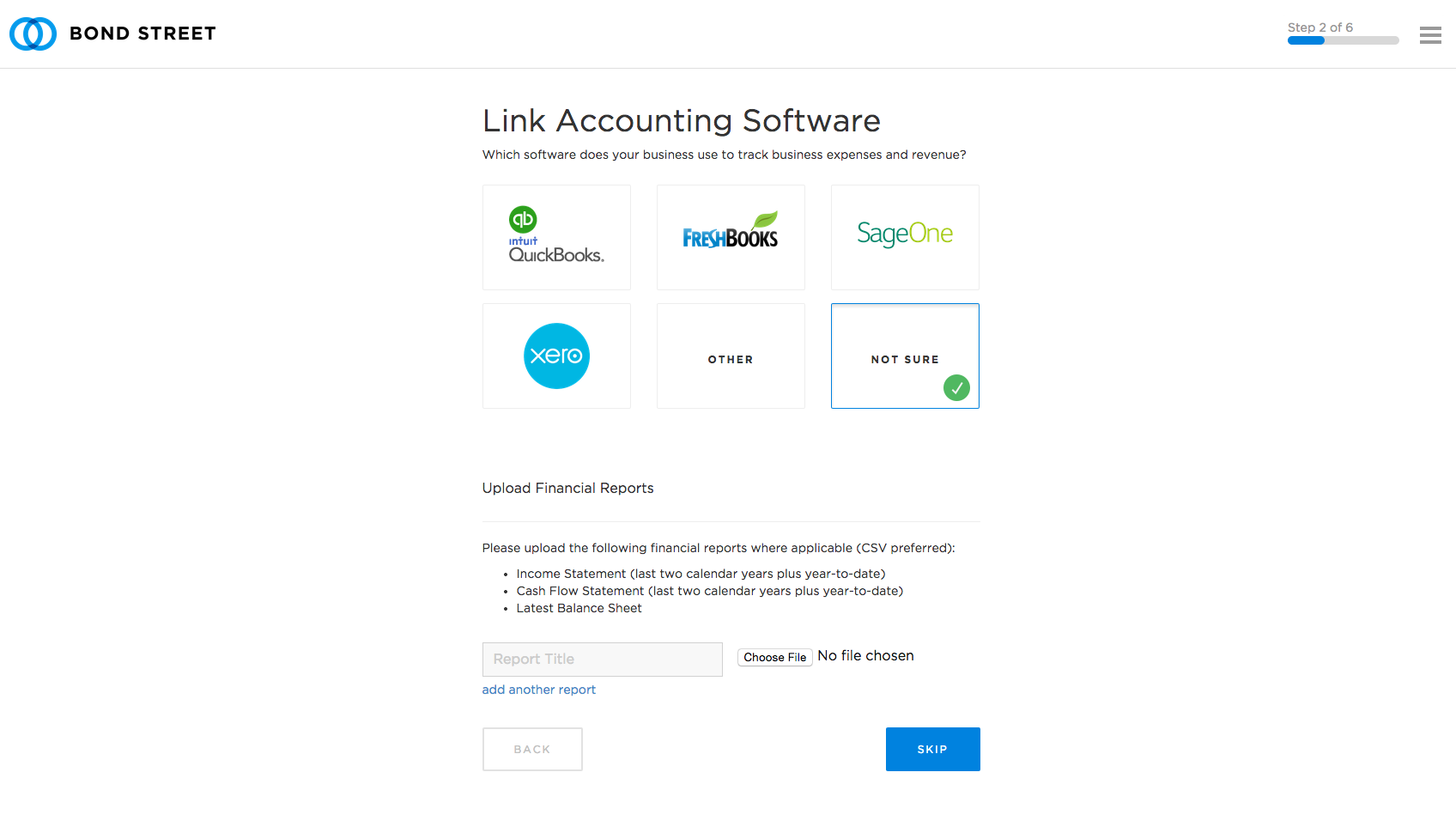 A great example is how easy Bond Street makes it for its customers to link to their accounting packages (see Fig. 4 below). I see this is a simple but good example of creating an ecosystem where data is combined in such a way that people and business can derive tangible benefits from it. Through linking to your accounting package as part of the loan application process, businesses save a lot of precious time and effort, since they no longer have to manually input all kinds of financial data.