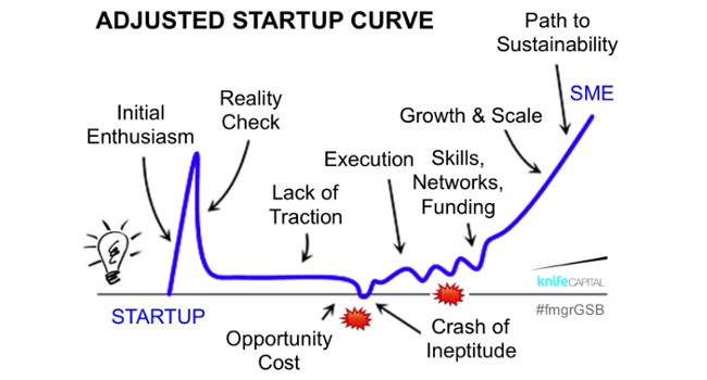 Focus on the problem – I loved how Uri concentrated on the problem that you’re looking to solve. He talked about problem solving being a key driver for him and the different startups that he’s (been) involved in. For example, Waze originated from Uri’s frustration with traffic jams … Uri then talked us through the “Adjusted Startup Curve” to illustrate the typical journey of a startup, starting with a problem to solve.