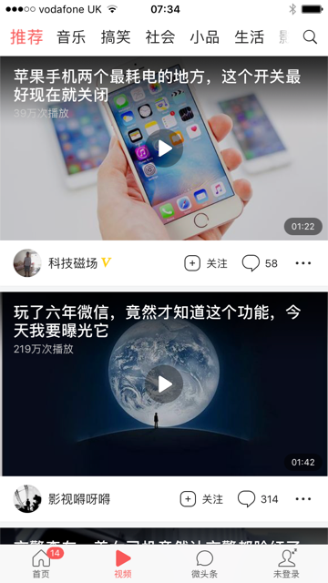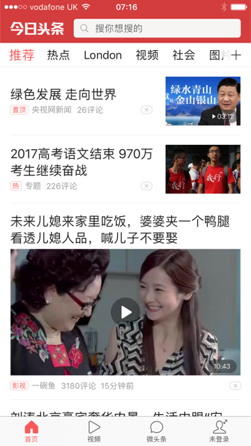 Fig. 3 – Screenshot of video section on Toutiao iOS app