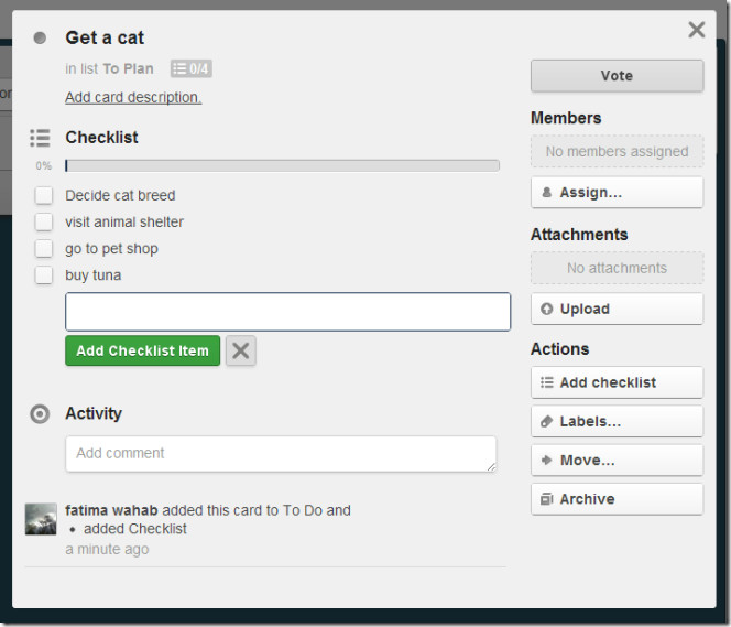 Fig. 5 – Add your checklist in Trello – Taken from: https://www.addictivetips.com/internet-tips/trello-an-online-pinboard-for-task-organization-collaboration/