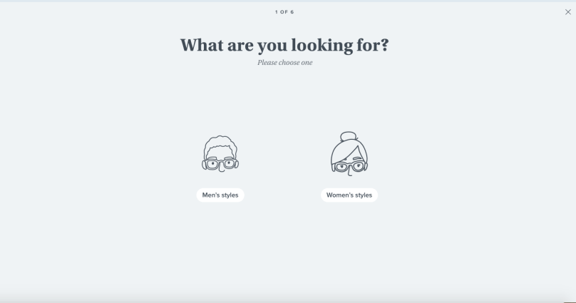 Getting started, what’s the process like? – After clicking on “Get started”, I can choose between styles for men and women.