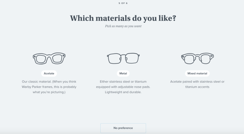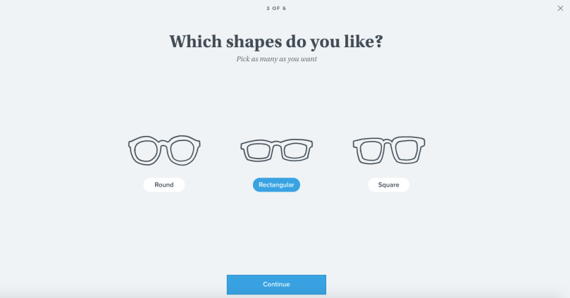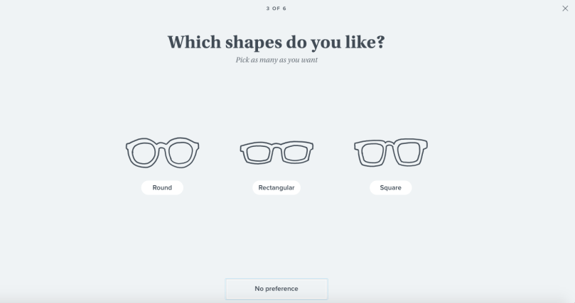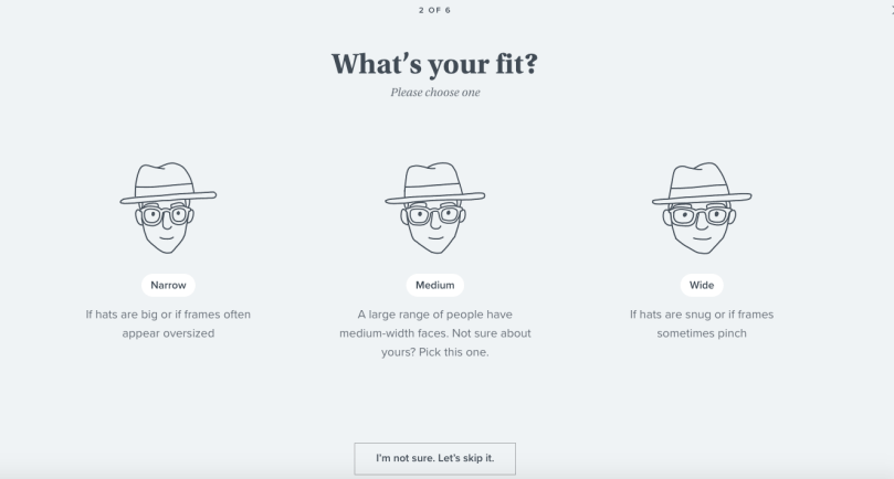 Having selected “Men’s styles”, I’m pleased that there’s an option for me to skip the “What’s your fit?” screen as I’m unsure about the width of my face 🙂