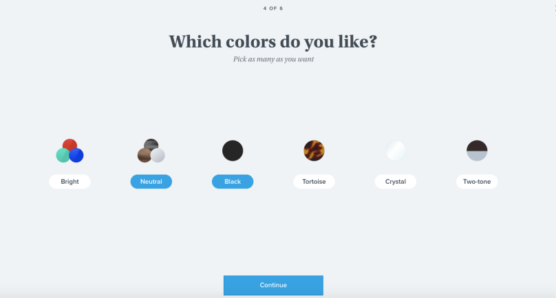 The same applies for the next screen, where I can pick colours and I select “Neutral” and “Black” simply because I find it easier to visualise what the frames will look like in these colours.