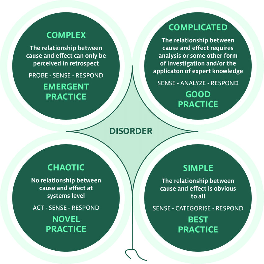 The question arises when it make sense to create a red team. Hoffman explains that although all red teaming starts out with a problem, not all problems require red teaming. David Snowden’s Cynefin framework is great tool to figure whether it’s worth doing a red teaming exercise: