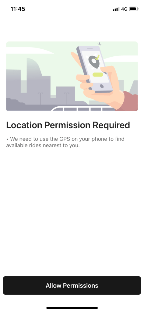 Once I’ve installed the Ola app on my phone, the opening screen doesn’t explain about what Ola is, but instead encourages me to join Ola in return for a £15 voucher.