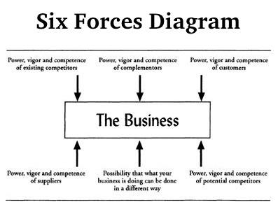 “A strategic inflection point is when the balance of forces shifts from the old structure, from the old ways of doing business, from the old ways of competing, to the new.” In other words, a strategic inflection point brings on a significant changing of fundamentals, which it’s hard to fully plan for, formally at least. This doesn’t mean that one shouldn’t plan, but that we should look at ways in which we, our teams and our businesses can best respond to change. Grove highlights that change is a constant. For instance, businesses are about creating changes for other businesses, competition is about creating change and technology is about creating change. Grove illustrates this nicely in his Six Forces Diagram (See Fig. 1 below).