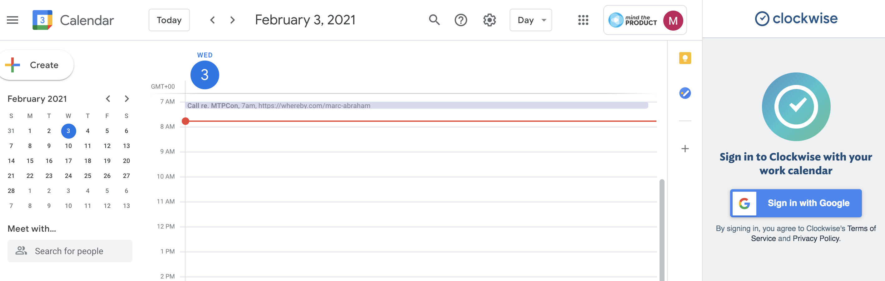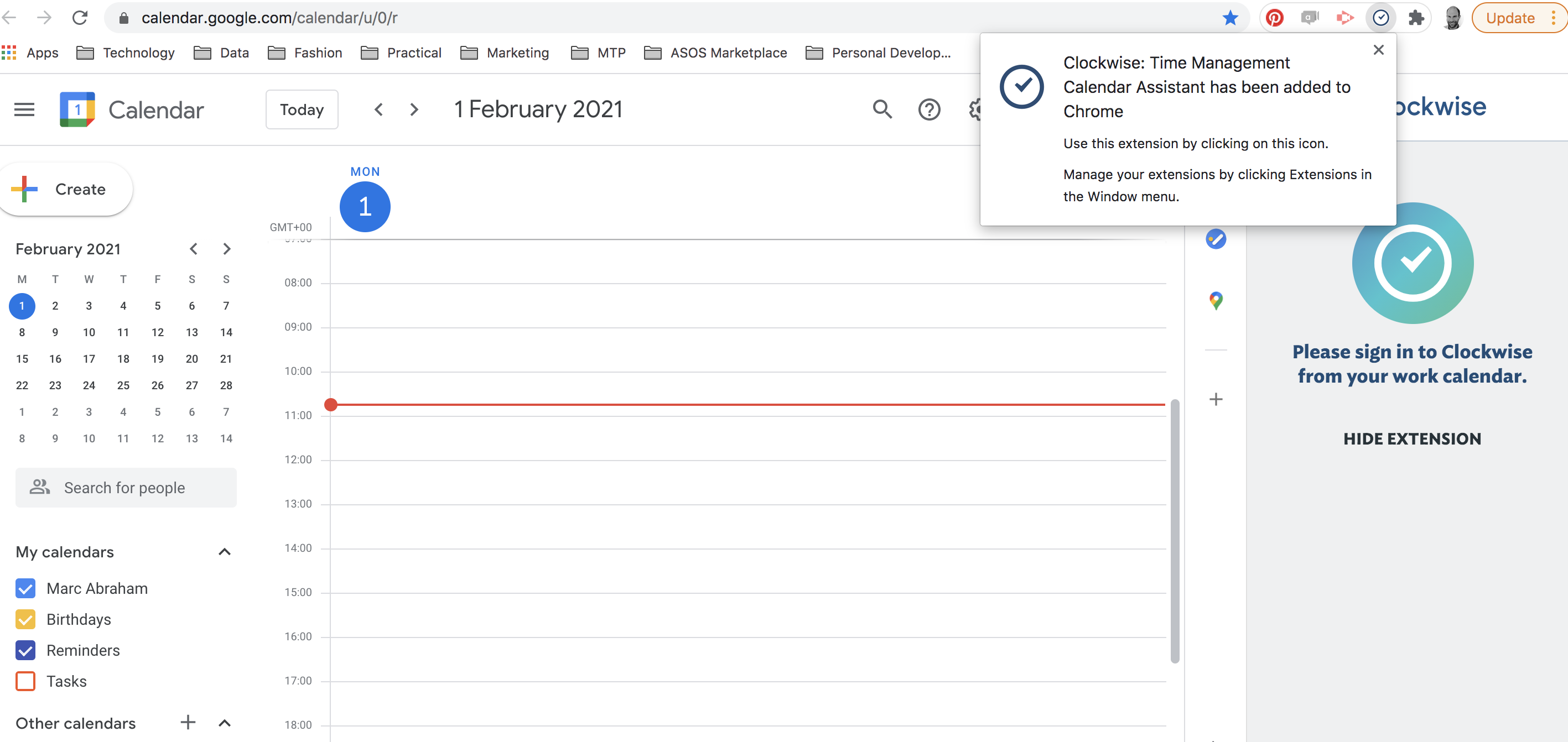 After agreeing for Clockwise to be added as a Chrome extension, my Google calendar appears and a pop-up message to confirm that Clockwise has been added. I’m a tad confused by the adjacent message which reads: “Please sign in yo Clockwise from your work calendar.” Am I not already signed in? I’m in my calendar, what do I do next?!