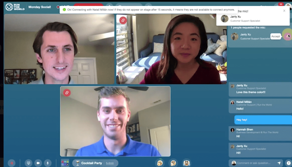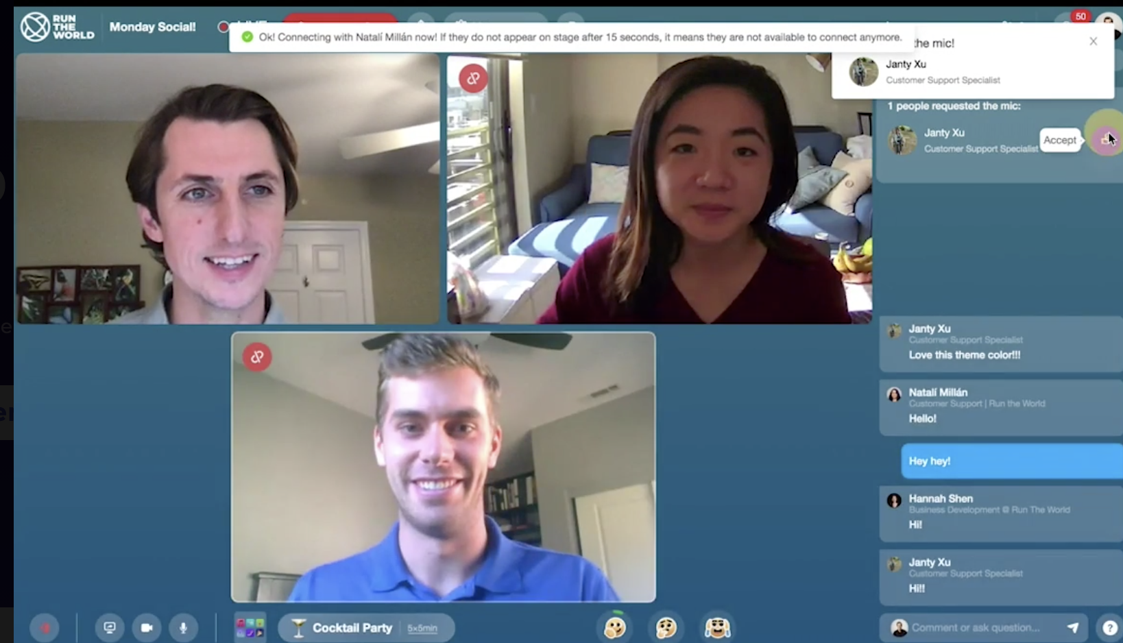 Main learning point: Forget about running your events through a Zoom call, products like Run The World now offer a usable and feasible way to run events at scale, and fully engage with your event attendees.
