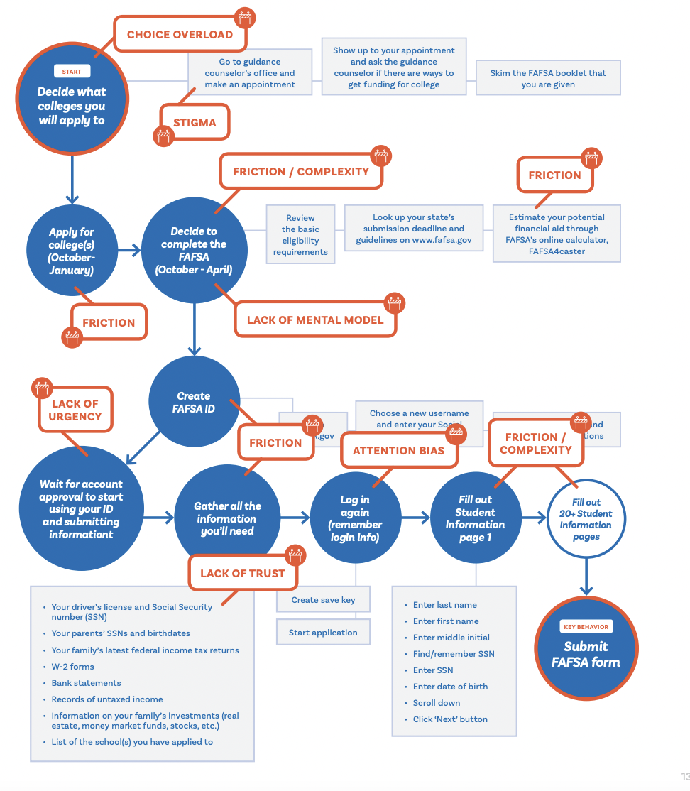 The level of granular detail thus mapped out is the biggest difference between a behavioural diagnosis and a journey map. Also, in a behavioural diagnosis we look at the mental steps someone takes to get to a desired outcome. Once we’ve got this full understanding, we can then identify any biases or points of friction that affect someone’s behaviour. This in turn will help us in coming up with hypotheses about how to solve friction or any problems that someone encounters, and how to best these hypotheses.