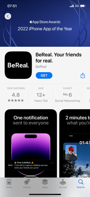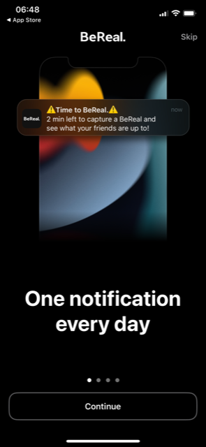 How does BeReal explain itself in the first minute? – “bereal. your friends for real” is what I see when I search for BeReal on the app store. These are the main features that are mentioned in the app store: