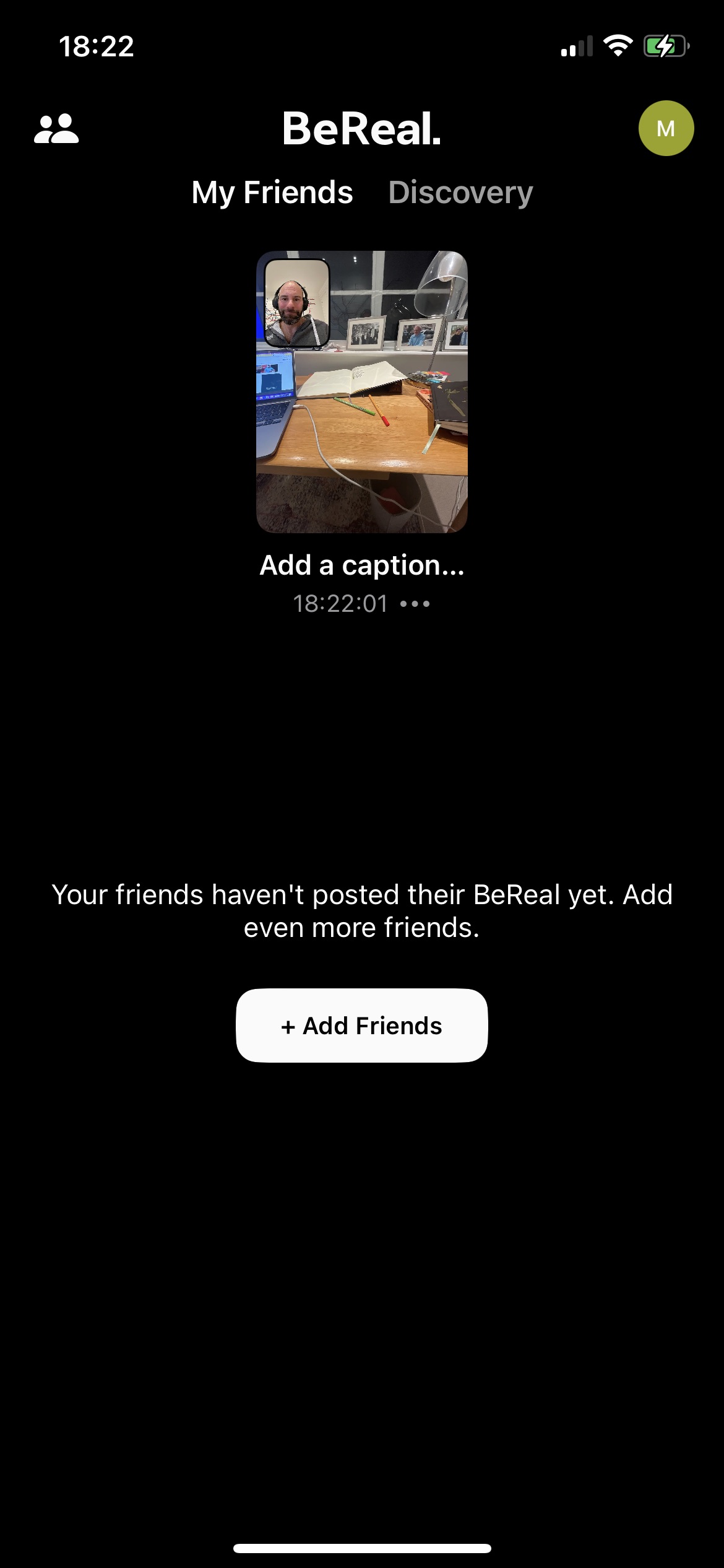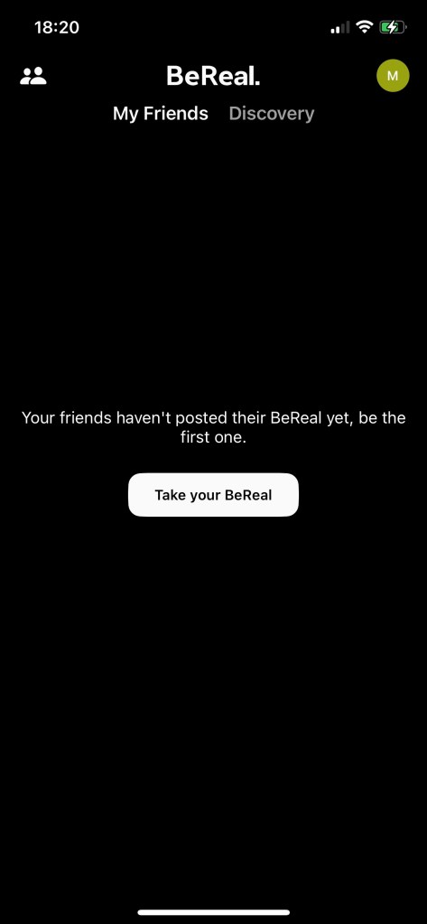 The next step is for me to create my first post. Only when I start posting can I see my friends’ post on my BeReal discovery feed.