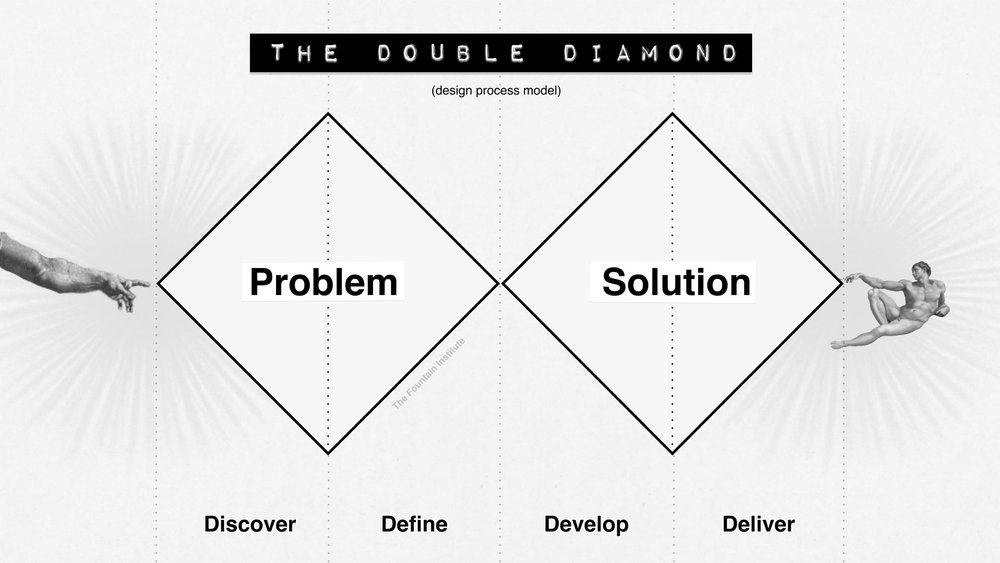 The so-called “Double Diamond” is a method that guides a lot of product discovery. The idea behind the Double Diamond is to go through phases of divergence (generating lots of ideas) and convergence (narrowing down the number of ideas). When doing product discovery, you apply convergence / divergence to a problem and a solution.