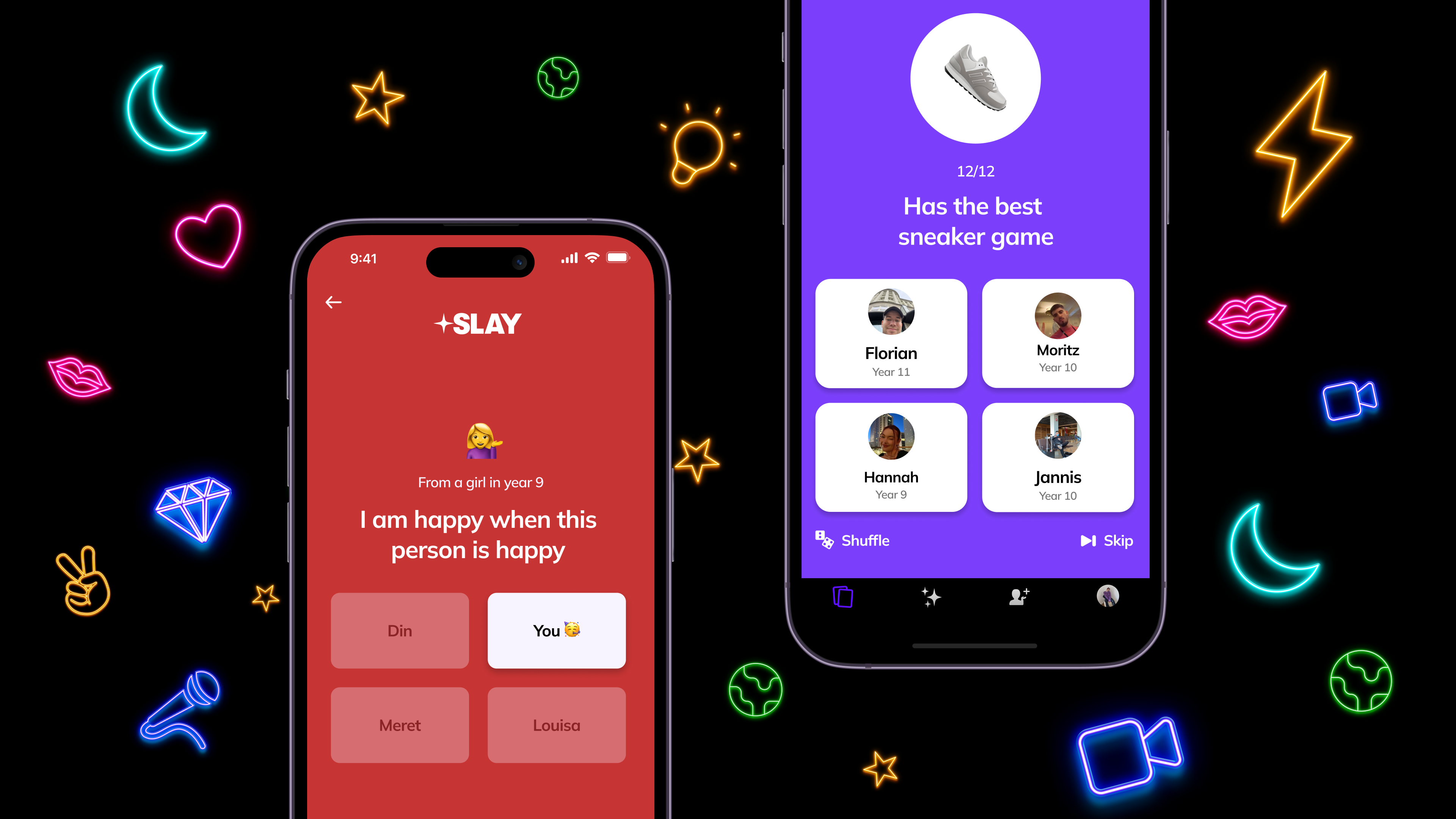 Slay is Berlin-based and was founded last year by Fabian Kamberi, Jannis Ringwald and Stefan Quernhorst. Their mission is to reduce the negative impact of many social media interactions today. Slay wants to provide ‘playfulness’ and sets out to “maintain a positive first approach”. Apps like Instagram and TikTok channel a lot of inauthentic and influencer-driven expectations, which can have a negative impact on the mental health of young people. In the words of Co-Founder Fabian Kamberi Slay’s goal is to foster positive, safe, meaningful social interactions through the power of compliments and positive game modes in the app.”