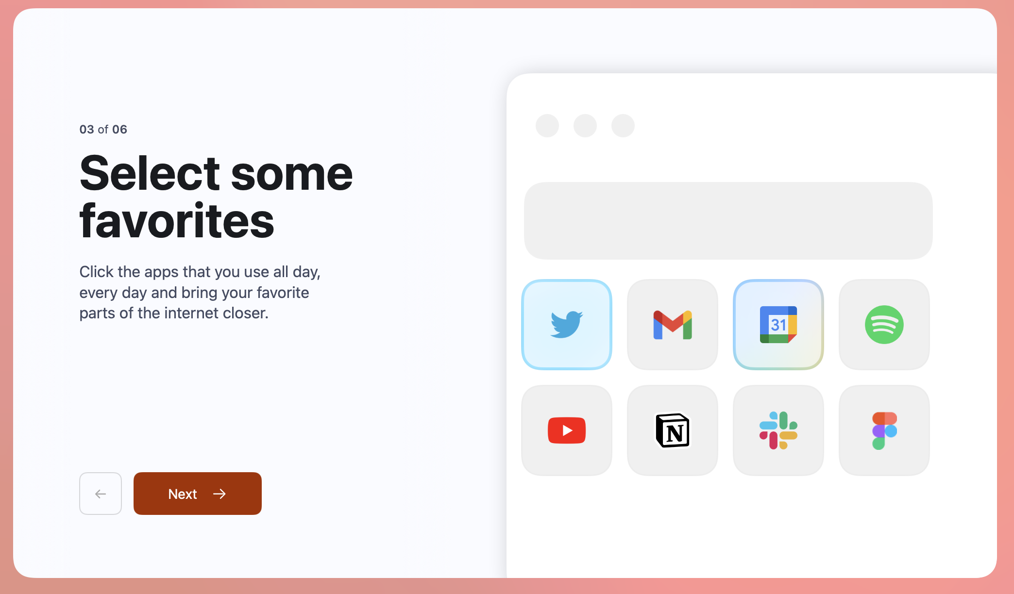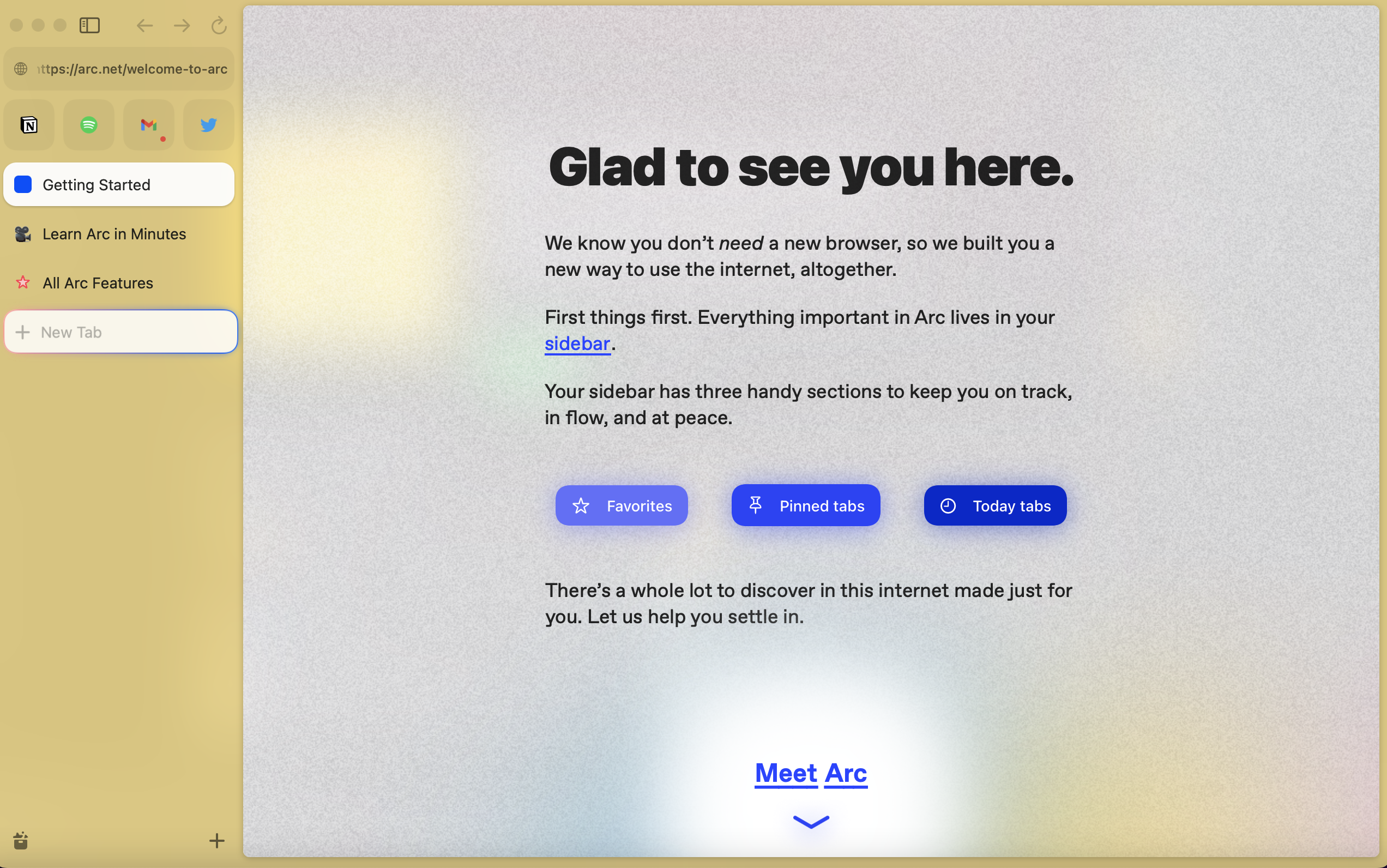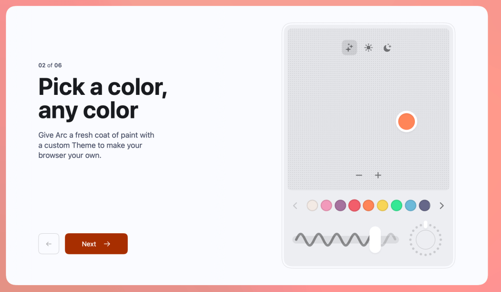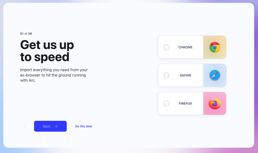 Main learning point: I like how Arc lets users personalise their browser. Getting set up feels very simple and the end-result is a browser that feels non-intrusive and highly personalised.