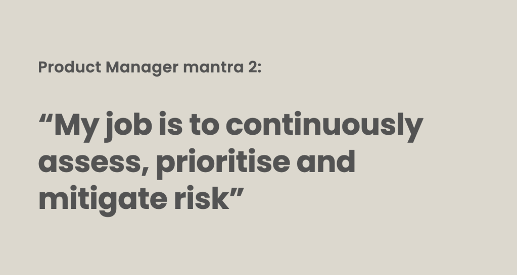 “Risk management” is another aspect of product management that we don’t talk about enough. Being on the front of foot when it comes to assessing, prioritising and mitigating risk is a key skill that product managers need to have in their locker.
