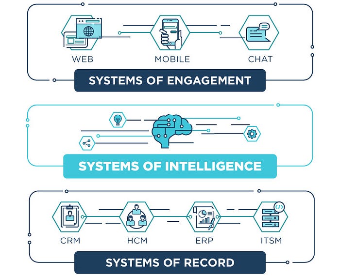 Chen suggests three areas where businesses can use AI techniques to build systems of intelligence: customer facing applications, employee facing applications and infrastructure systems. Using Machine Learning in combination with data, a business process, and an enterprise workflow, you can create the context to build a system of intelligence.