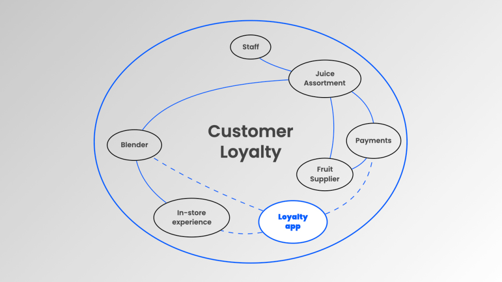 As you’d expect, the product manager is laser focused on constantly improving and optimising the loyalty app. The question though is whether the PM for the Joe & The Juice Loyalty App is ignoring other aspects of the Joe & The Juice system to their detriment. Think of the customer experience in-store, the quality of the fruit or the experience levels of the ‘juicers’ in-store. The point is that all these aspects AND the loyalty app are part of the wider system that is customer loyalty.