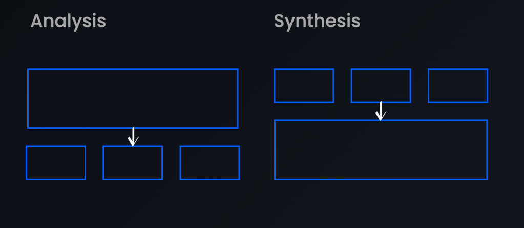 This is a great definition by Donella Meadows, one of the original system thinking pioneers. In my Joe & The Juice example, the loyalty app is one of the components in a system that sets out to achieve the objective of increasing customer loyalty. As product managers we’re used to pulling apart the bigger whole, to analyse its individual components. We need to flip our thinking when we look at systems and synthesise. We use synthesis to understand how the different components or nodes fit into a bigger whole.
