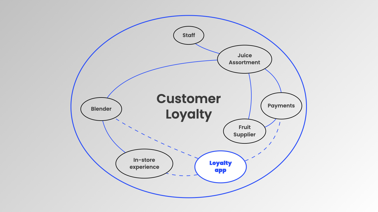As you’d expect, the product manager is laser focused on constantly improving and optimising the loyalty app. The question though is whether the PM for the Joe & The Juice Loyalty App is ignoring other aspects of the Joe & The Juice system to their detriment. Think of the customer experience in-store, the quality of the fruit or the experience levels of the ‘juicers’ in-store. The point is that all these aspects AND the loyalty app are part of the wider system that is customer loyalty.