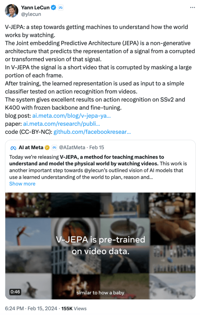 - https://ai.meta.com/blog/v-jepa-yann-lecun-ai-model-video-joint-embedding-predictive-architecture