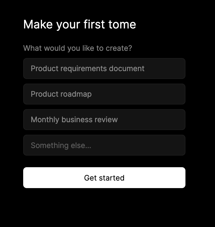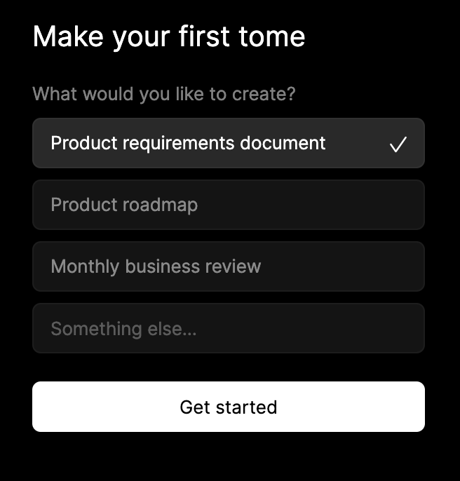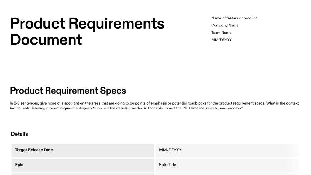 For my personal use case of creating a PRD, I’ll need to create this document manually because I don’t have a paid Tome subscription. Tome offers a standardised template for this.