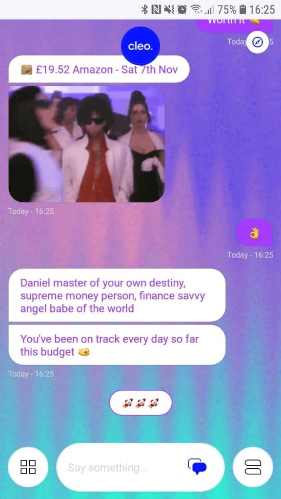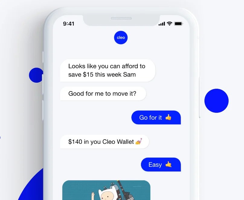 Hype – Cleo’s “Hype” mode encourages users when they’re making financial progress, showering praise if users are meeting their financial goals.