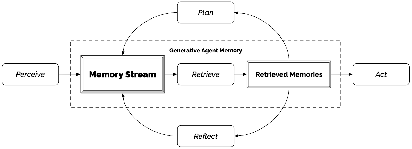 Thus far a lot of innovations in the AI space have been based on a single AI Agent interacting with a task or a human. What if you have multiple agents working together to solve complex tasks?! The first step is to enable AI agents to behave more human-like; connecting different pieces of information and applying this information to specific context in which the AI agent operates. Researchers are working on an architectural environment called the Memory Stream which stores all the events that happen in an AI environment. By storing all events and making them easily accessible, the AI agent can use its previous interactions to inform its current actions.