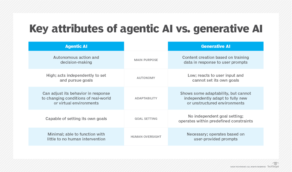 In the current craze about AI, it’s sometimes easy to forget that AI can be used for more than creating chatbots or generating images. Agentic AI or ‘autonomous AI’ brings a different dimension in a sense that agents can make decisions, carry out tasks and learn from interactions. Whereas generative AI relies on human input in the form of prompts or set rules to create specific output, agentic AI is designed to make decisions independently and take proactive actions. Generative AI is focused on creative outputs like images or video. Agentic AI makes decisions or takes actions that are aligned with achieving a specific goal.