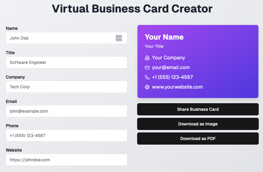 2. See a live preview of their virtual business card with a sleek, professional design.