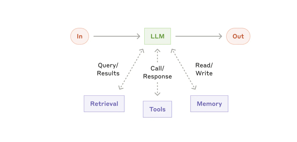 - Building block: the augmented LLM – The augmented LLM is an LLM enhanced with augmentations such as retrieval (finding relevant info from a collection of data sources), tools, and memory. These capabilities enable data models to generate their own search queries and determine what information to retain.