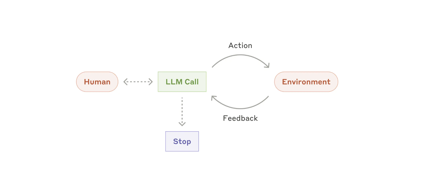 - Agents – Autonomous agents are typically just LLMs using tools based on environmental feedback in a loop. The essay explains how agents begin their work with either a command from, or interactive discussion with, the human user. Once the task is clear, agents plan and operate independently. During execution, it’s crucial for agents to gain “ground truth” from the environment at each step (such as tool call results or code execution) to assess its progress. Agents can then pause for human feedback at checkpoints or when encountering blockers.