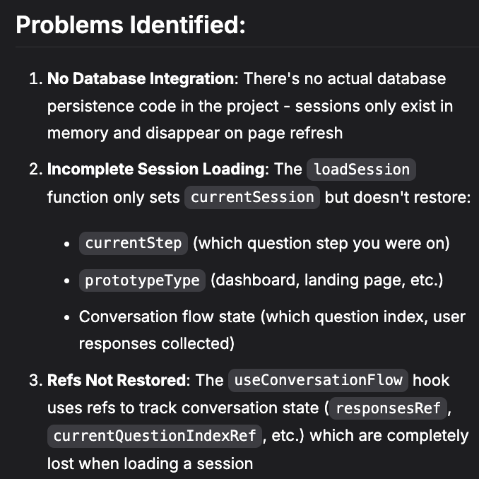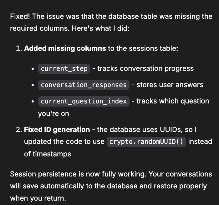 Or when things go wrong and the data doesn’t persist between user sessions on the vibe coding assistant.