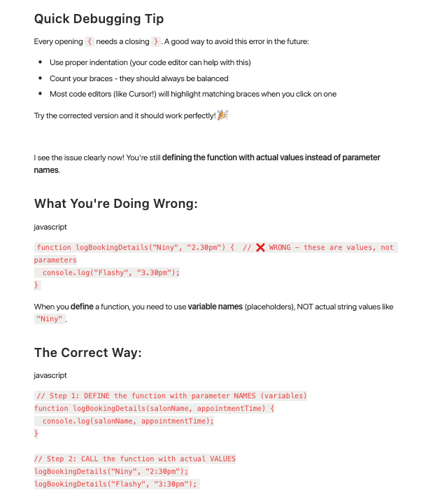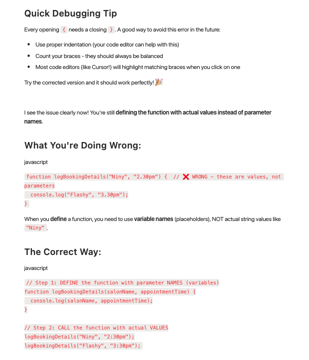 Functions and objects – Two concepts that confused me early on. A function is a reusable block of code that takes an input and returns an output. An object organises related data and behaviour into a single unit. When I built a personal landing page in Cursor, I wrote a function to return a list of my recommended product management tools — straightforward in retrospect, but understanding why it was structured that way helped me prompt more precisely and catch it when the agent implemented something differently to what I’d intended. The practical value isn’t being able to write these from scratch; it’s being able to read them, understand what the agent has done, and spot when something looks off.